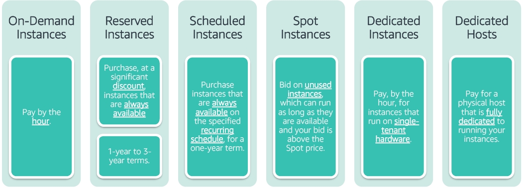 Billing for your EC2 VM’s is metered-by-the-second, but you can purchase them from a variety of options based on your application usage and budget.source: Amazon Web Services