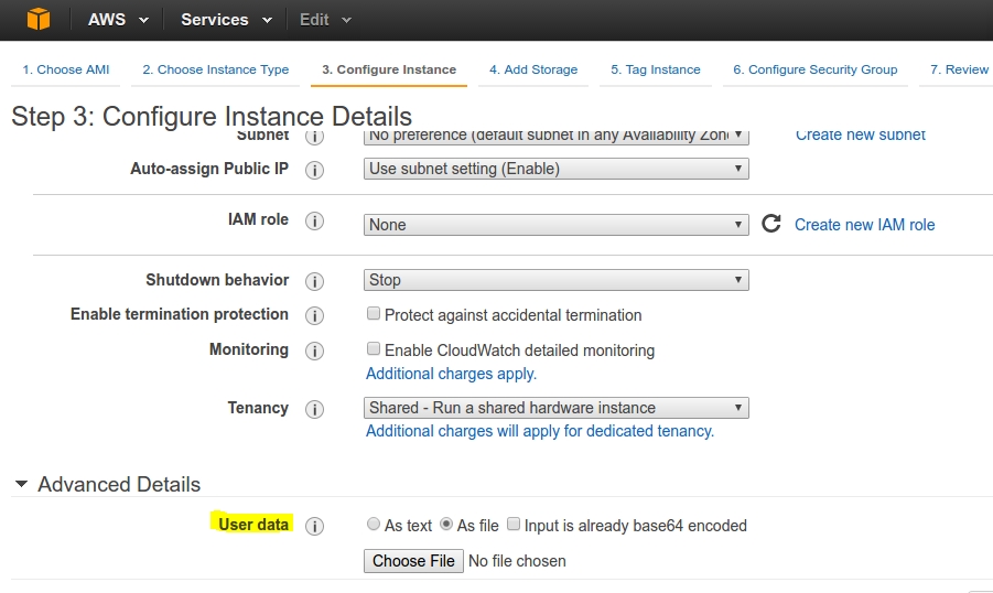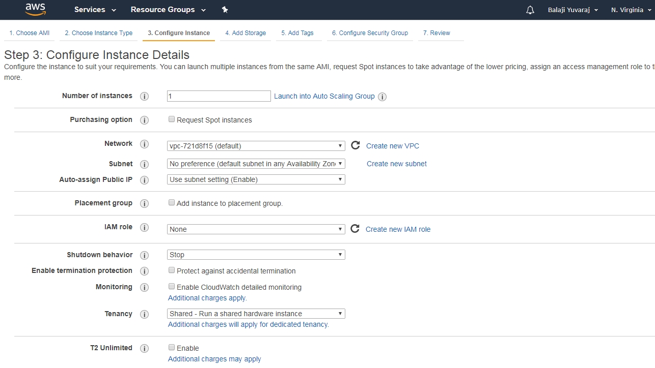 Next, configure various options for your new instance — network assignments, IAM roles, Monitoring etc… You can also request multiple instances at this time if required.source: Amazon Web Services