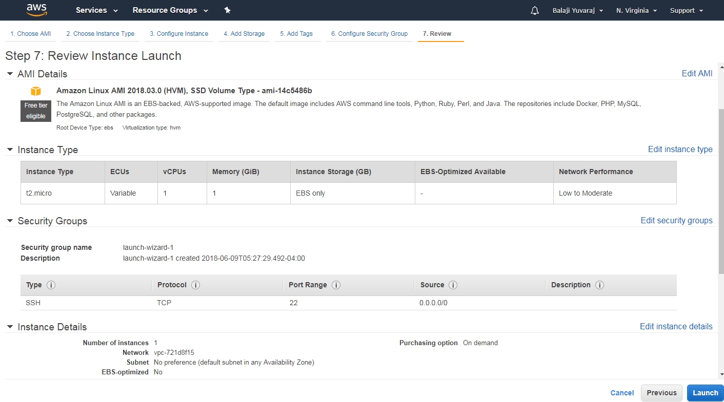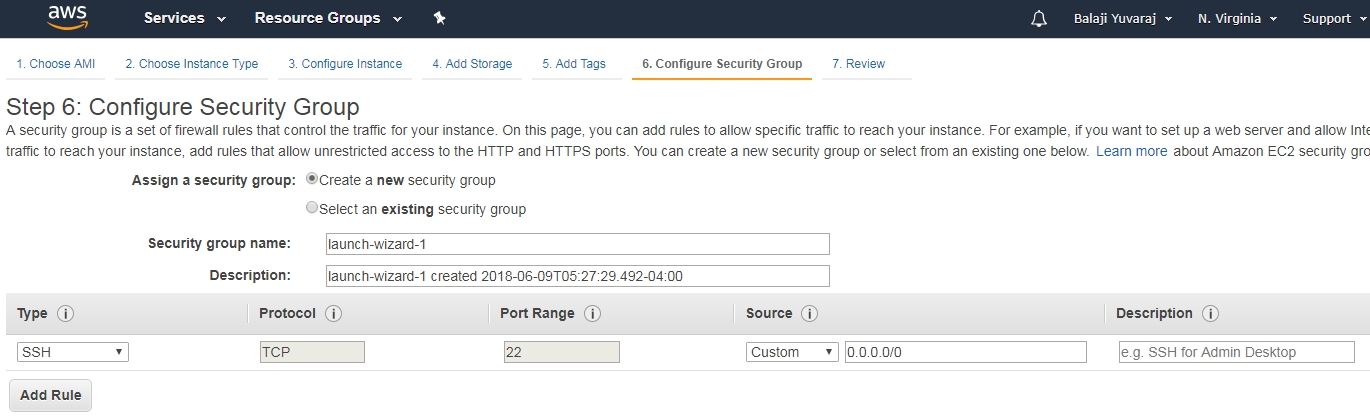 An important step is to configure the security groups for your instance. Security groups act as firewalls that operate at the EC2 instance level or the ENI level (elastic network interface). You can allow or disallow specific types of traffic to your instance, a large number of protocols are supported (SSH, TCP, HTTP, HTTPS, RDP, LDAP, UDP, ICMP etc)