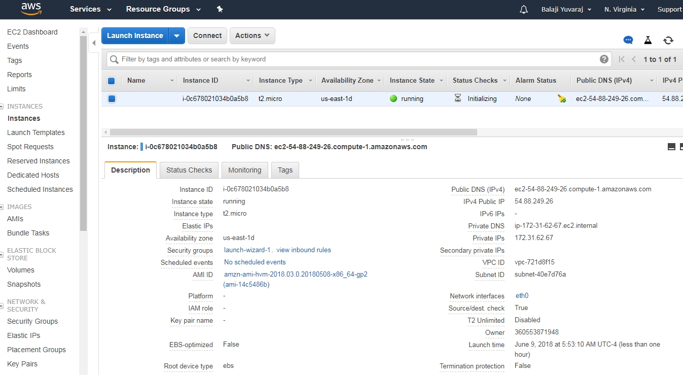 In a few minutes, you should be able to see your EC2 instance up and running.