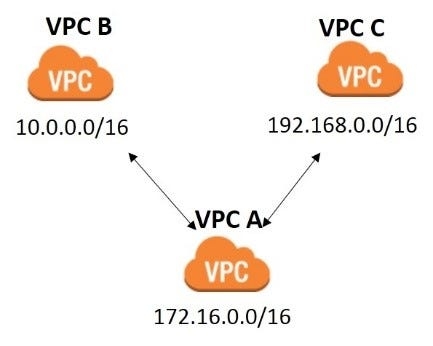 Note that you cannot do transitive peering i.e. you cannot connect to VPC-C from VPC-B through VPC-A.