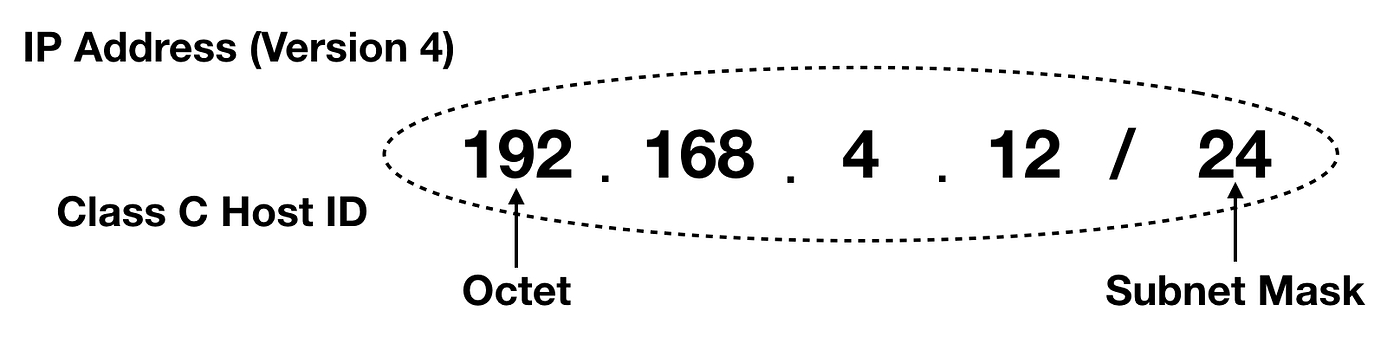 An IP address is divided into 4 parts, called octets. Each octet consists of 8-bits or 1 byte of information. CIDR notation is used to identify a host portion of the IP (the address) followed by a “/” (forward slash) which refers to the subnet mask. The subnet is the partition of the network to which the host belongs to, and the subnet mask is what identifies it. If you add up all the octets in an IP address you get: