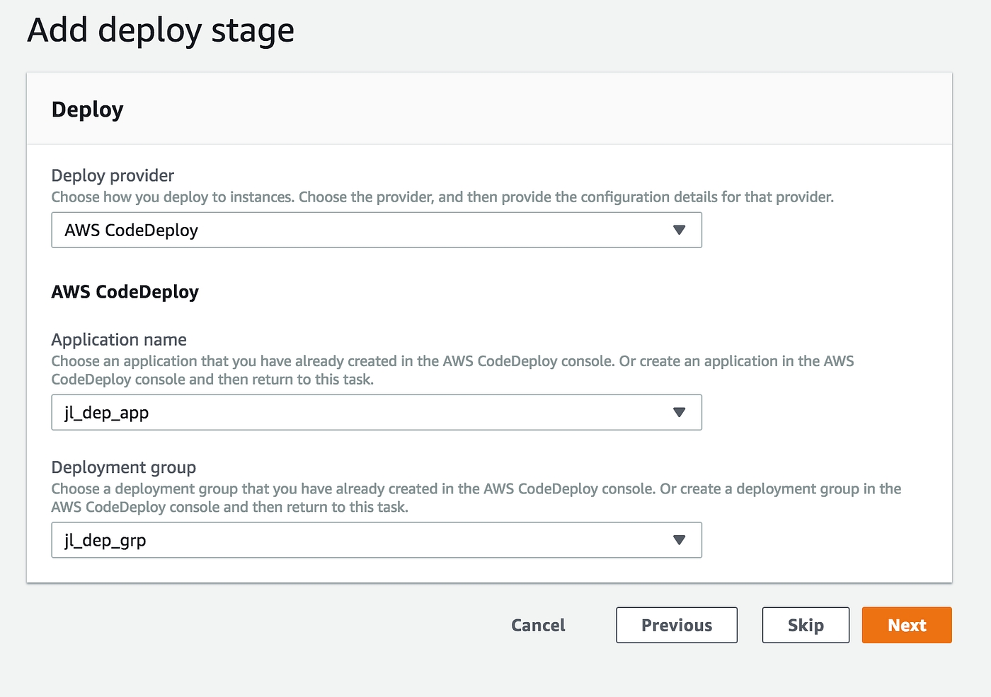 Time to then hook up the CodeDeploy project we setup before as follows;