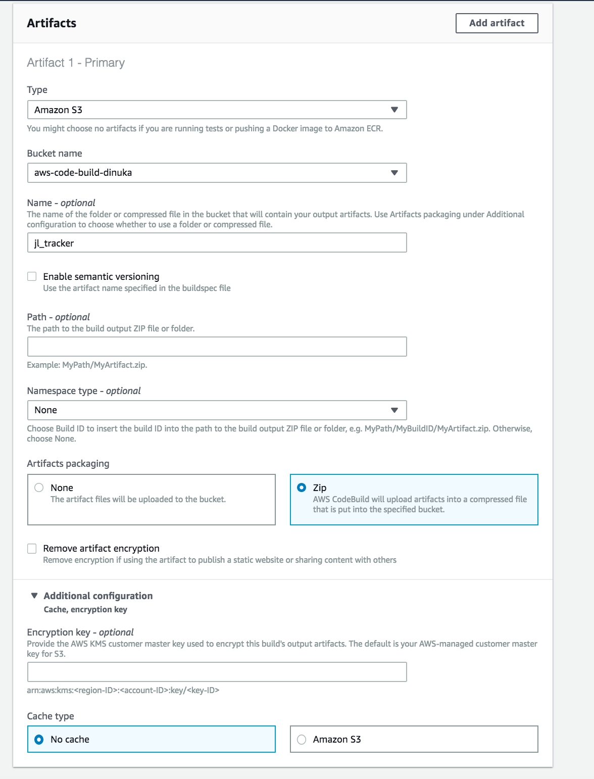 Lastly, you will configure how you want to artifact packaged. In this instance, I have configured it to be copied to S3 as a zip because AWS CodeDeploy needs it to be defined as a Zip so that it can do its deployment process. You can also specify the S3 location for copying the cached content previously explained.