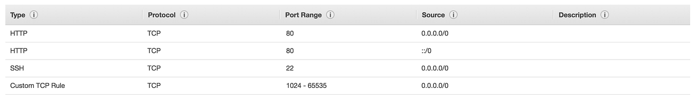 The Custom TCP rule is used so that we can test it out via PostMan at the end, as we need to open up the Ephemeral ports for the traffic to go out. More about ephemeral ports can be found here.