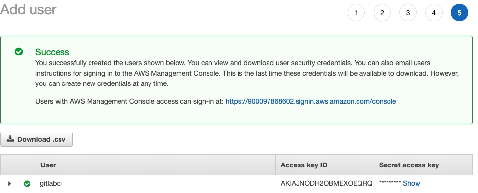 Created an IAM user for GitLab to use
