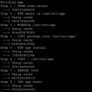 An interesting point to note is that if you stop your containers ctrl c and run docker-compose up again, you will notice that the build happens much faster this time.