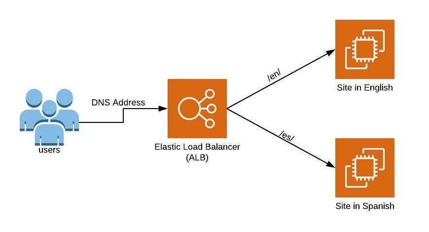 In the above slide, if the request contains the text /en/ the request would be forwarded to EC2 instance where our app (Hello World) is running in English and if the request contains the text /es/, then the request would be redirected to other EC2 instance and we will see the Hello World message in Spanish.