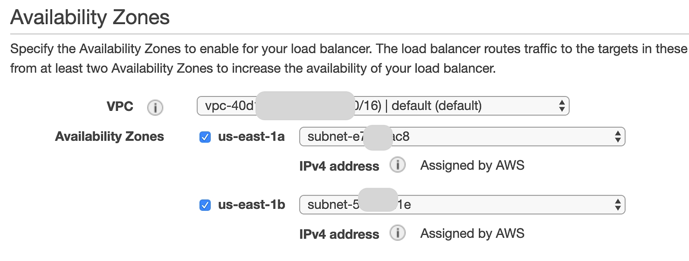 Select the Availability zones that your ALB would be running ALB AZs