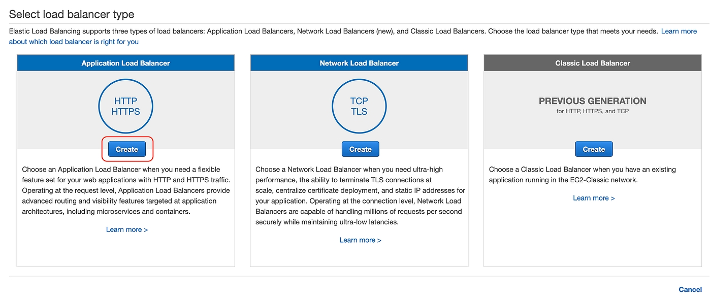 Click Create under Application Load BalancerCreate ALB